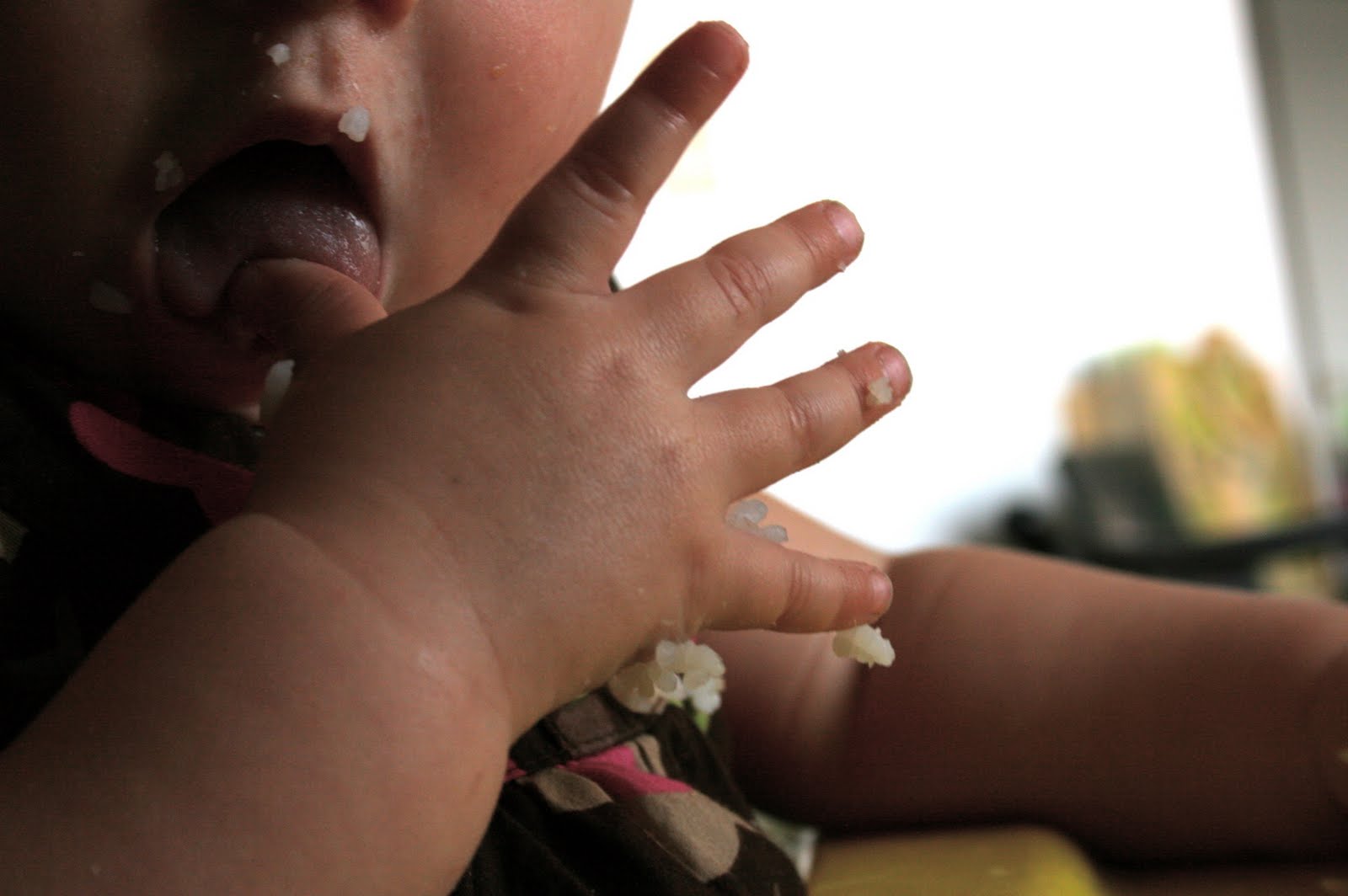 We were having rice for dinner last Sunday. Evie loved it! She couldn't get enough of that stuff.