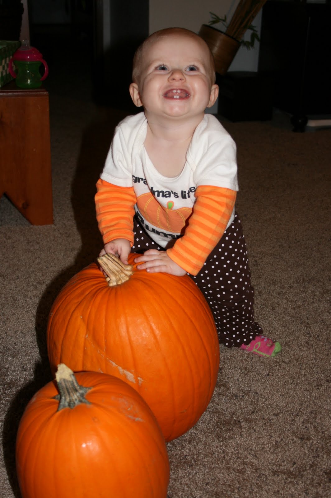 We decided to carve some pumpkins...we were going to carve them when Evie was awake, but thought again and decided to take pictures with her and the pumpkins, put her to bed, then carve the pumpkins in peace (and safety!).